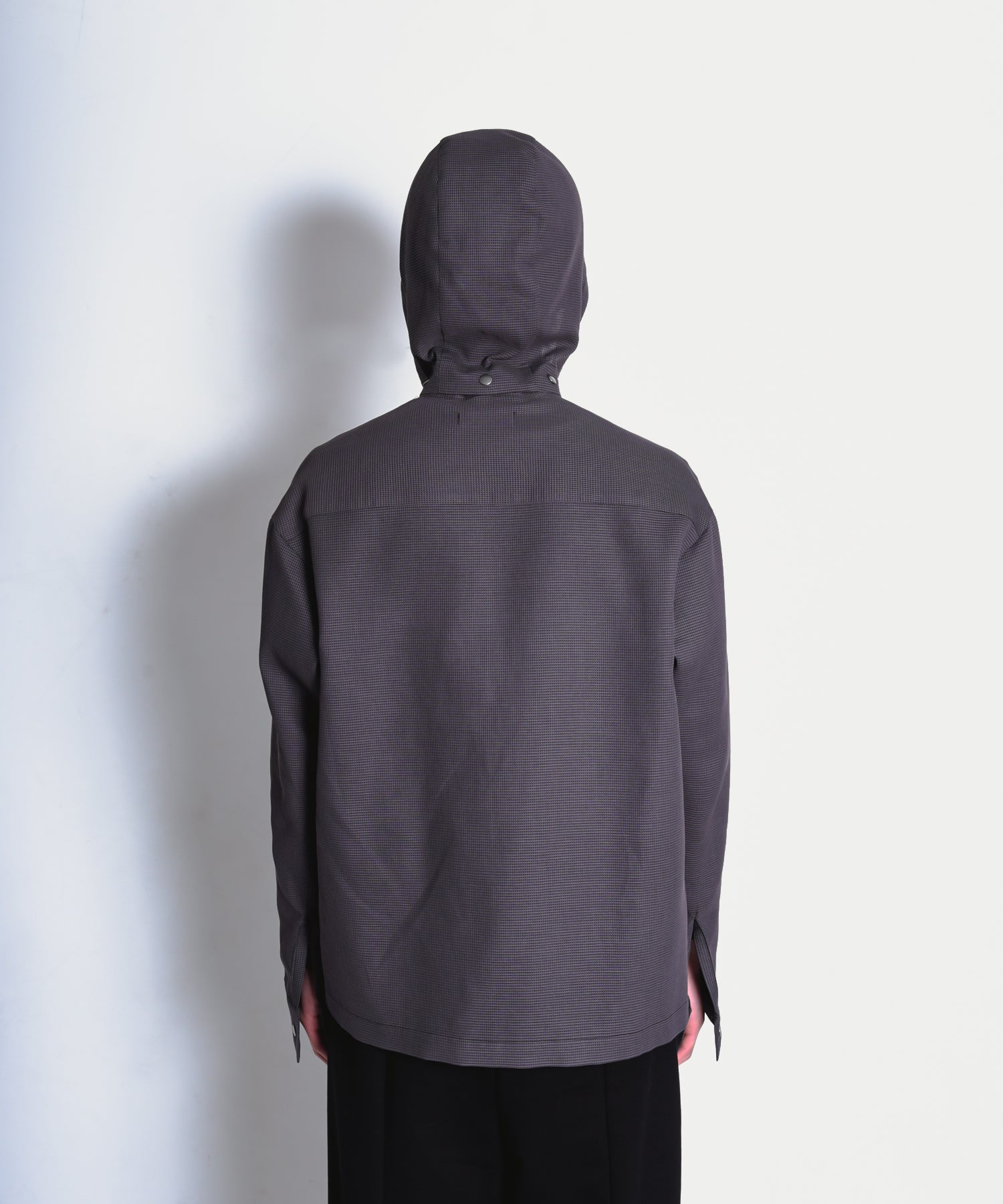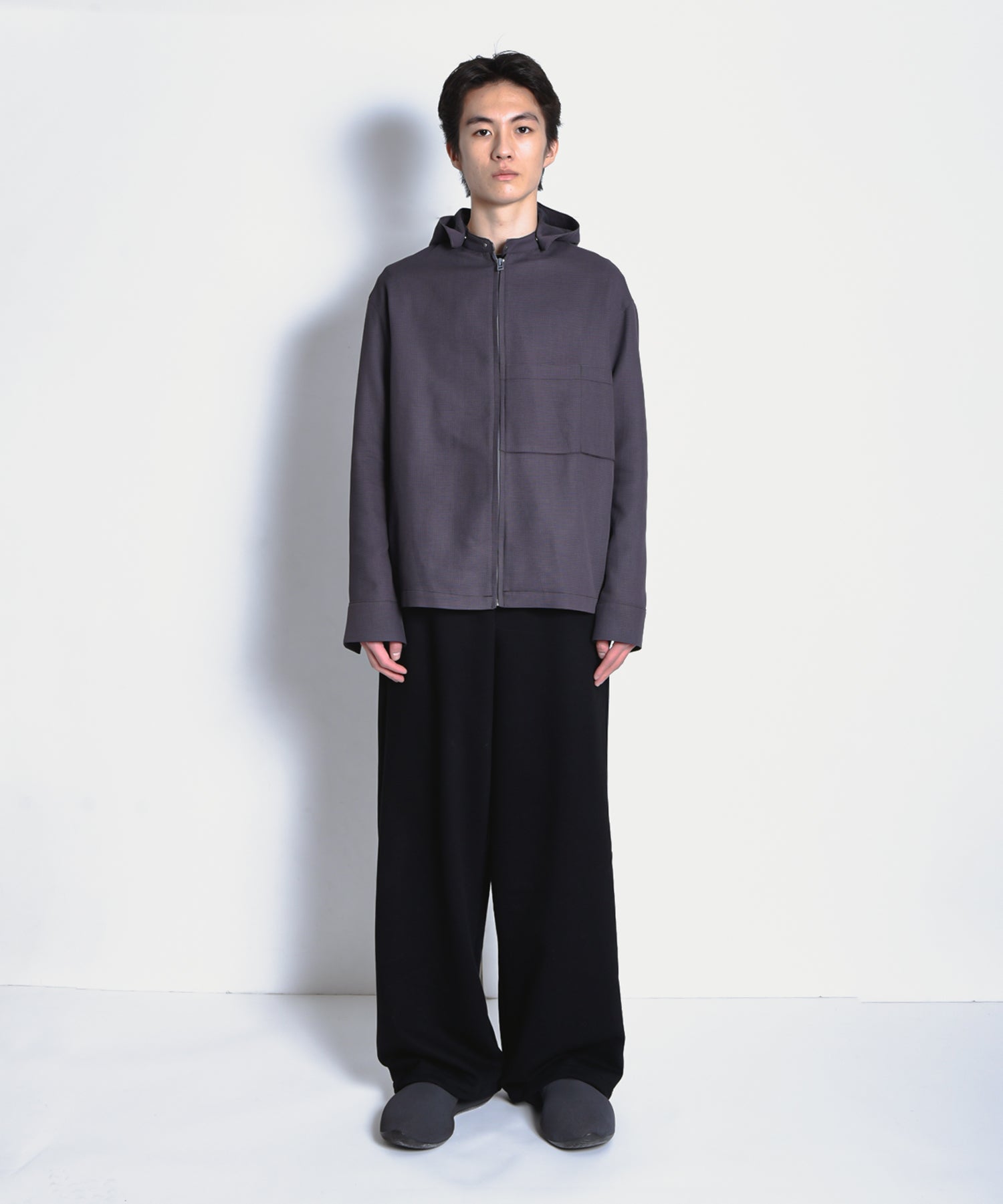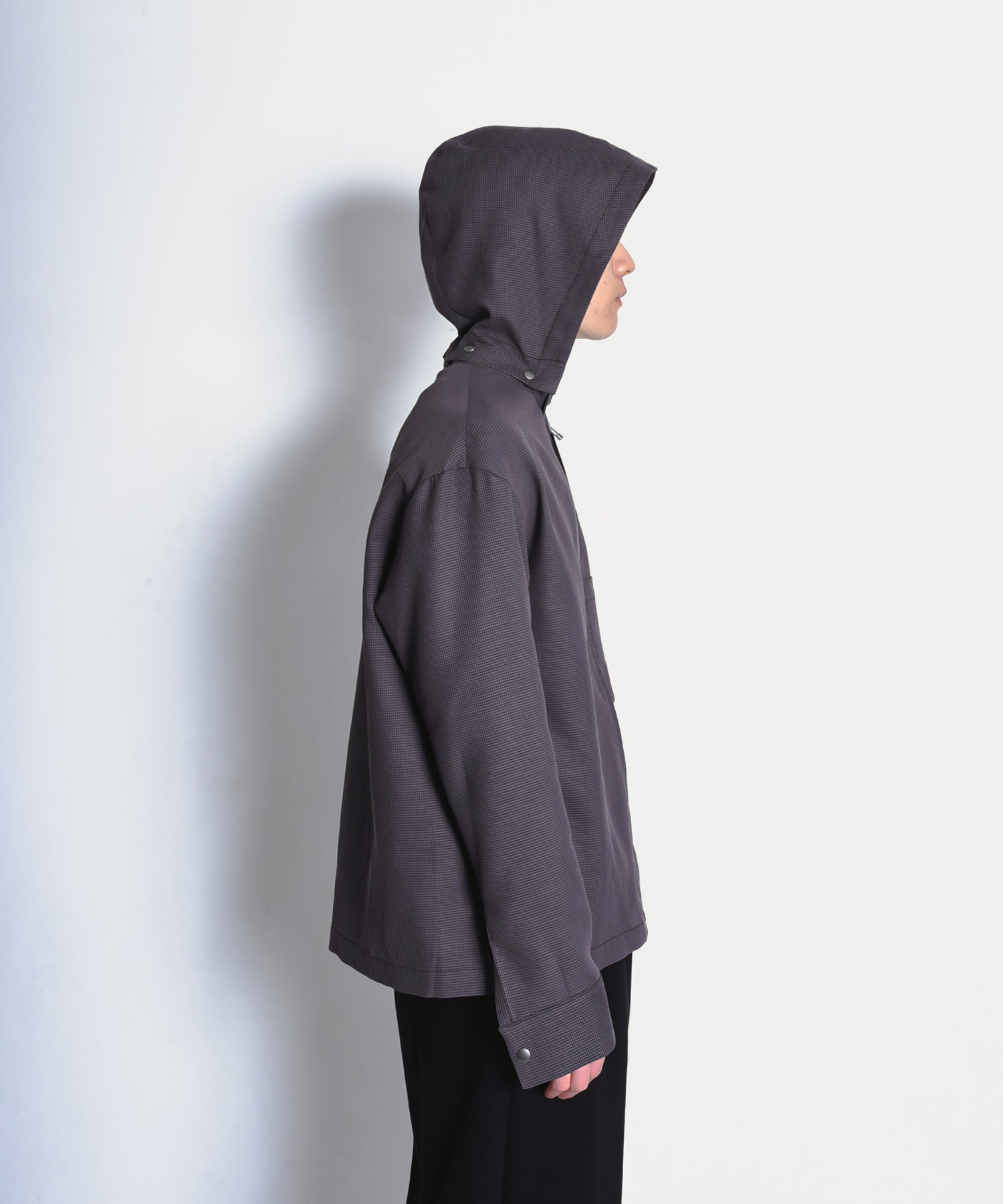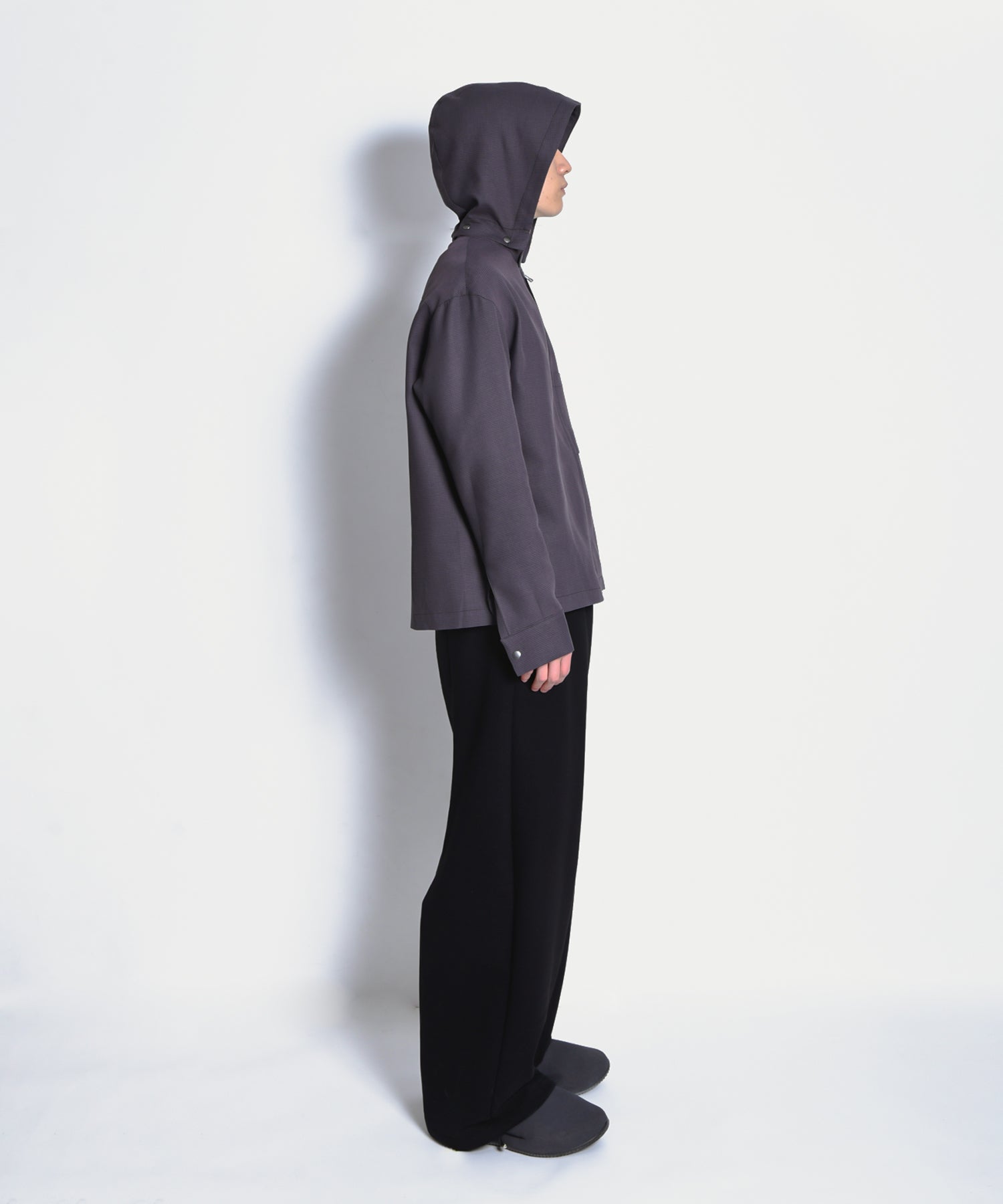 ライダースのような襟パーツにはソリッドな装飾ボタンを使用し、取り外しができるフードがシーンに応じてのスタイリングに拡張性をもたらします。