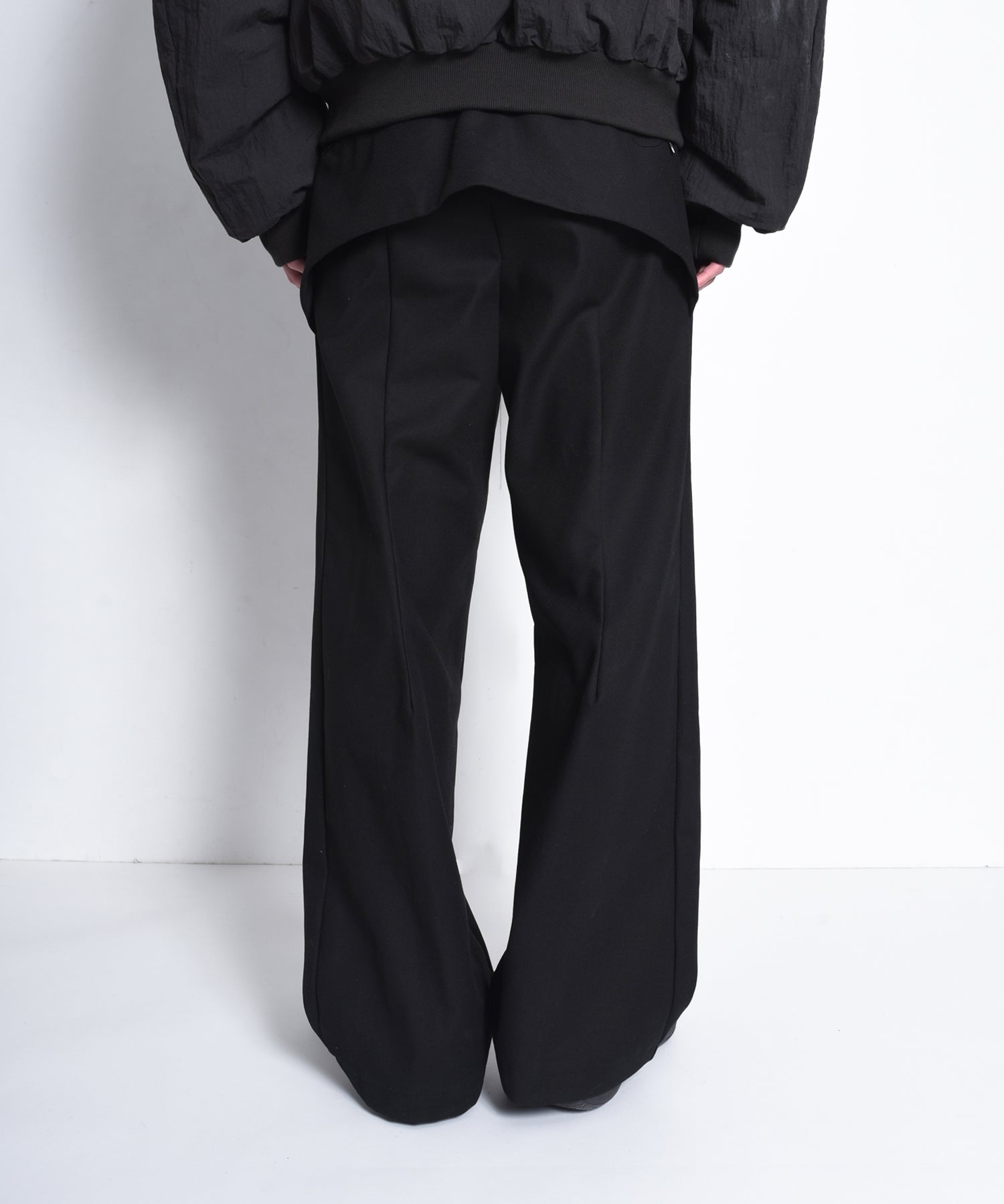 背面の特徴的なカットダーツが衣服の構造線を変形させ、独自のシルエットが作り出されます。