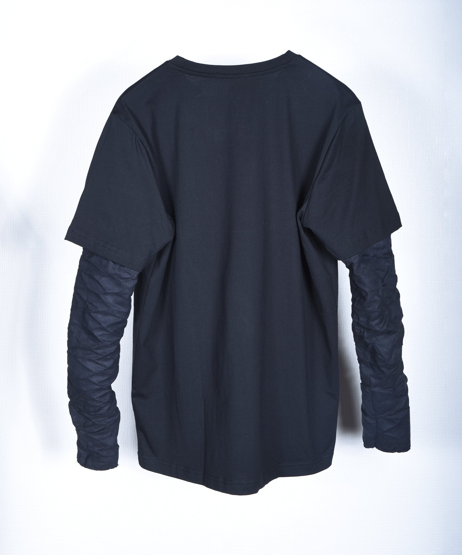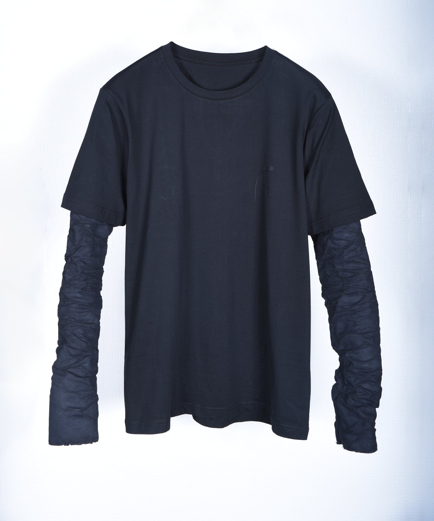 ディアスキン素材を使用し、従来のVEINの加工プロセスを変更し作られたレイヤードTシャツ。